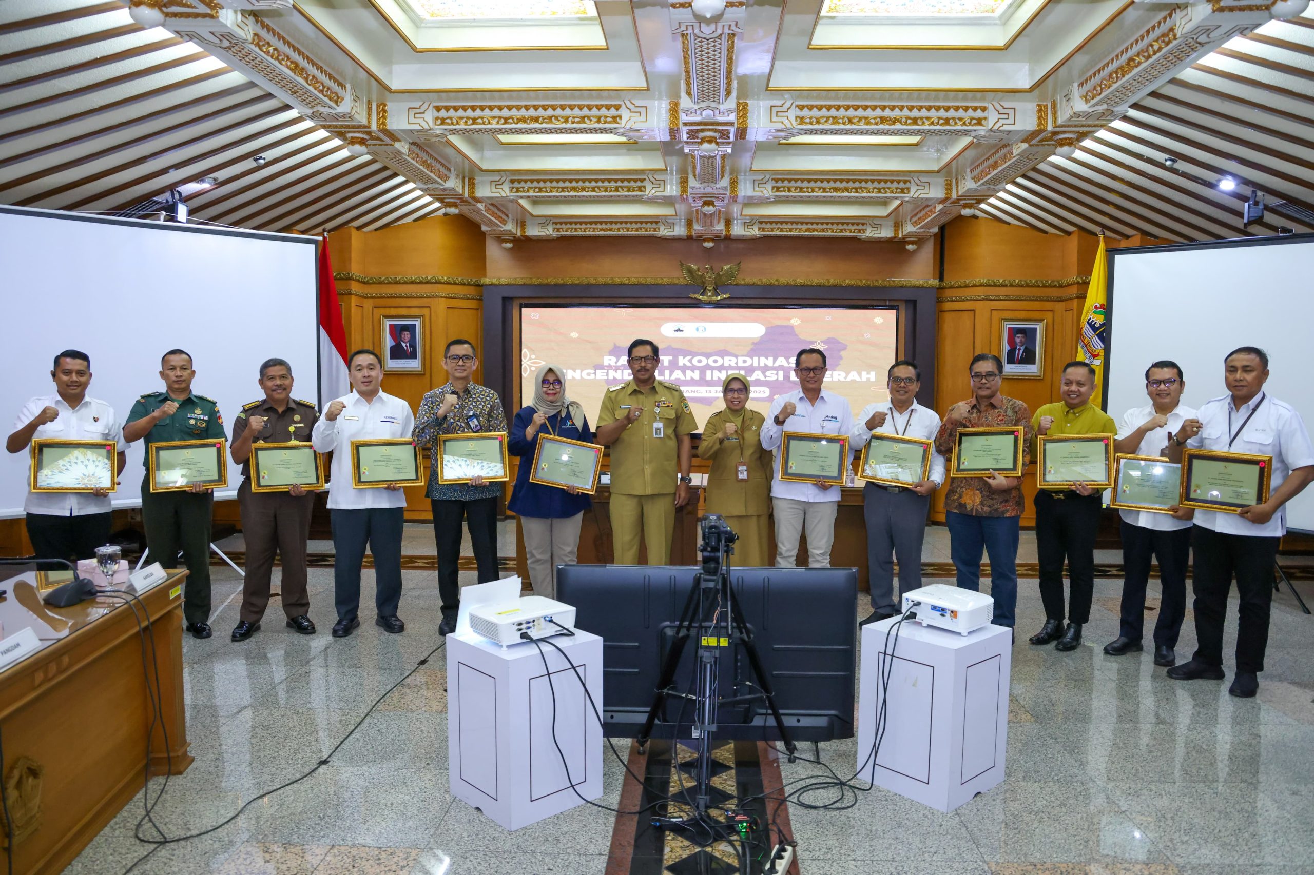 Piagam penghargaan diserahkan oleh Penjabat (Pj) Gubernur Jawa Tengah Nana Sudjana, dalam Rapat Koordinasi (rakor) Pengendalian Inflasi Daerah di Kantor Gubernur Jawa Tengah, Senin (13/1/2025).