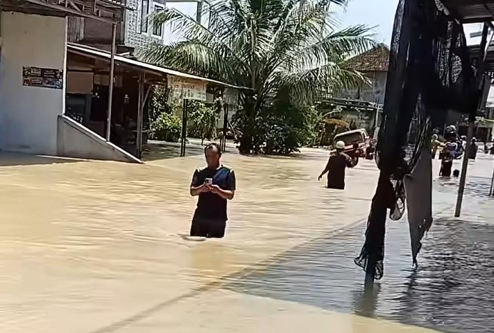 Jebolnya tanggul ini memperparah aliran air yang masuk ke permukiman warga.