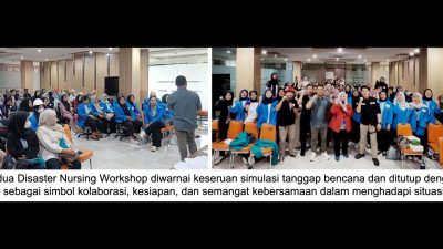 Hari pertama workshop difokuskan pada pemaparan materi keperawatan bencana dan manajemen krisis kesehatan. Peserta diajak memahami peran strategis perawat dalam situasi darurat, mulai dari tahap pra-bencana, saat bencana, hingga pascabencana. Sementara itu, hari kedua diisi dengan simulasi tanggap bencana yang bertujuan melatih kemampuan praktis peserta dalam mengambil keputusan cepat di kondisi krisis.