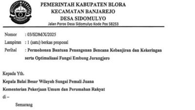 BLORA, Tuturpedia.com – Pemerintah Desa Sidomulyo, Kecamatan Banjarejo, Kabupaten Blora, melayangkan proposal mendesak kepada Balai Besar Wilayah Sungai (BBWS) Pemali Juana, Kementerian PUPR. Langkah ini diambil menyusul kondisi kritis Embung Jurangjero, prasarana vital yang saat ini sudah tidak berfungsi optimal akibat sedimentasi parah, kerusakan tanggul, dan sistem aliran yang buruk.