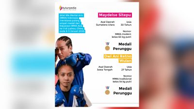 Tuturpedia.com — Indonesia menorehkan prestasi di ajang Kejuaraan Mix Martial Arts (MMA) Asia ke-3 yang digelar di Luzhou, China, pada 9–11 Januari 2026. Tim MMA putri Tanah Air berhasil membawa pulang empat medali, mempertegas posisi Indonesia sebagai salah satu kekuatan baru di kancah MMA Asia.