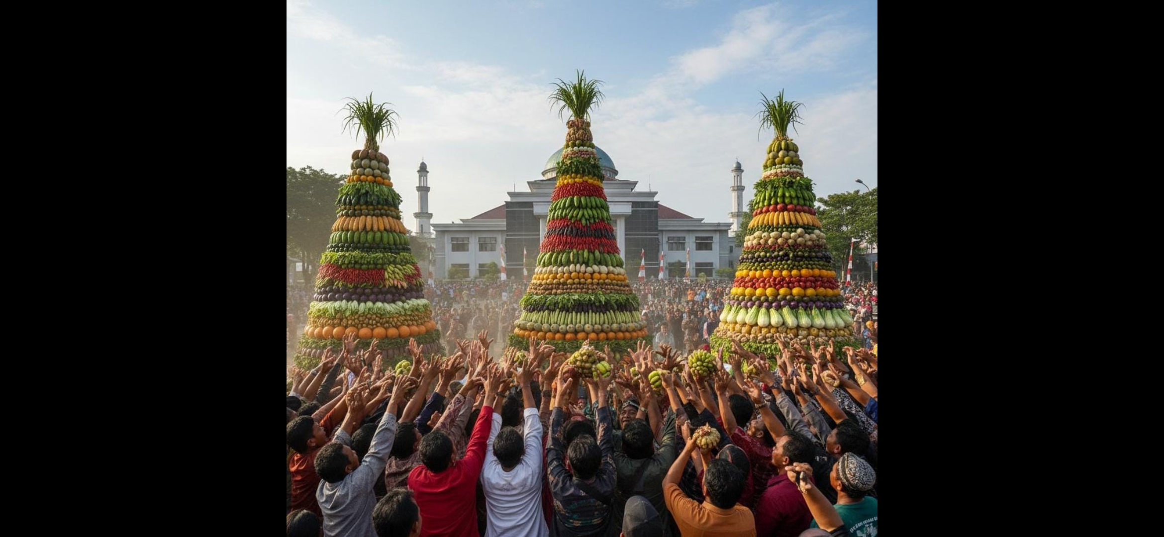 Sebelum diperebutkan, gunungan-gunungan ini biasanya didoakan secara khidmat oleh sesepuh atau tokoh agama setempat, menambah nuansa spiritual dalam kemeriahan.