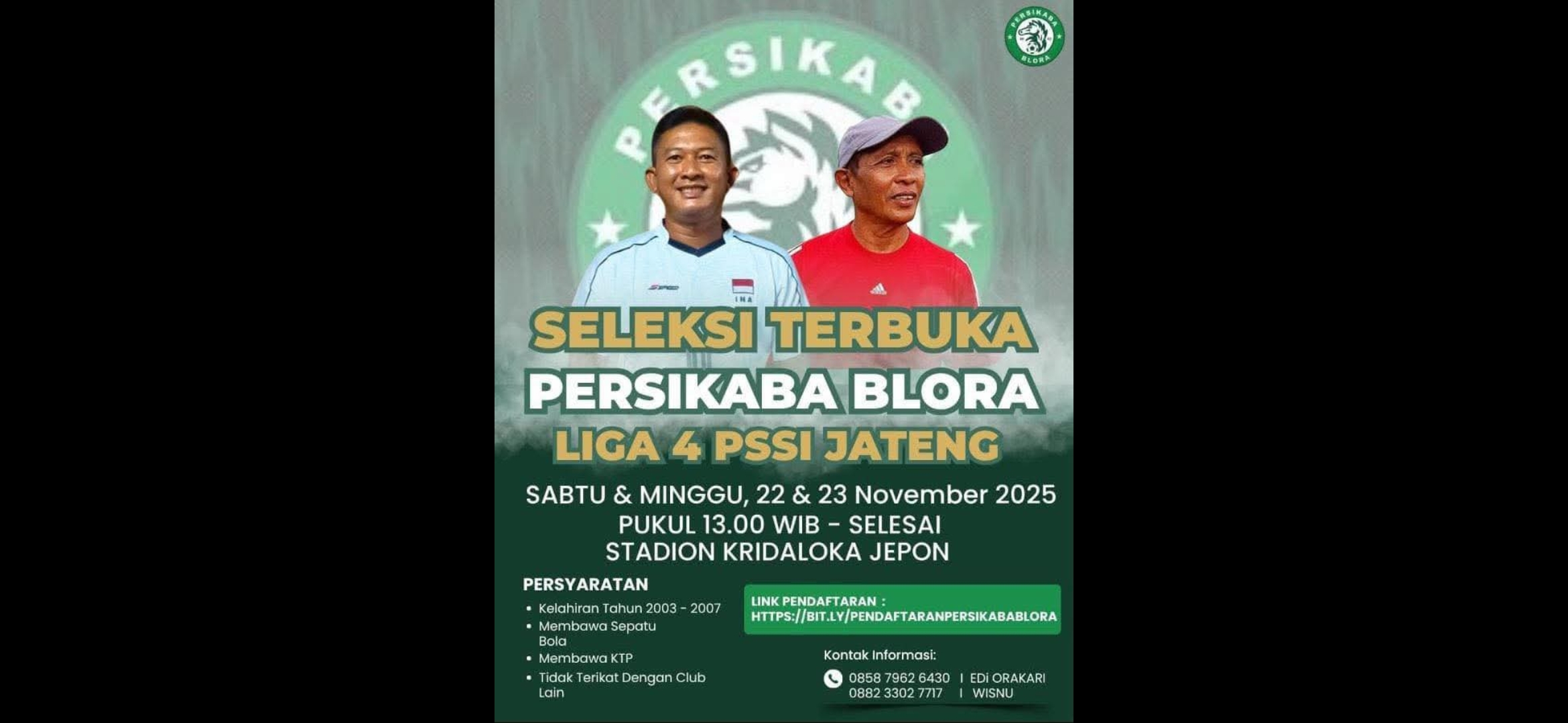 Sebagai langkah konkret untuk membentuk tim yang tangguh, Persikaba Blora mengumumkan Seleksi Terbuka untuk menjaring talenta-talenta muda Blora dan sekitarnya. Seleksi ini dijadwalkan akan berlangsung pada: