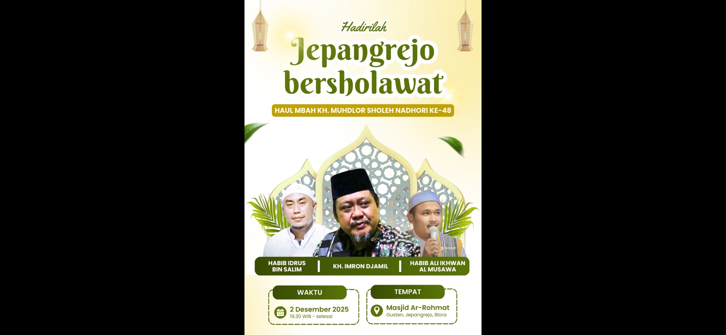 Acara spiritual dan keagamaan ini dijadwalkan berlangsung pada 2 Desember 2025. Dipusatkan di Masjid Ar-Rohmat, Gusten, Jepangrejo, Blora, kegiatan ini diharapkan menjadi malam penuh syafaat, dzikir, dan penguatan ukhuwah Islamiyah di wilayah Blora.