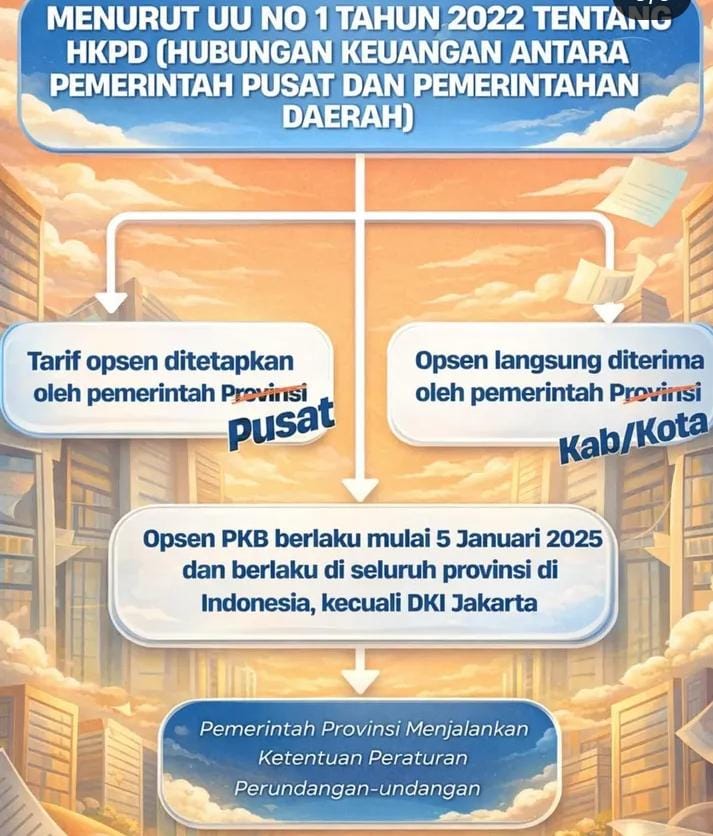 Penjelasan itu juga mengacu pada Undang-Undang tentang Hubungan Keuangan antara Pemerintah Pusat dan Pemerintahan Daerah (HKPD). Dalam skema tersebut, dikenal istilah opsen pajak, yakni tambahan pungutan yang mekanismenya sudah diatur pemerintah pusat dan diterapkan secara nasional.