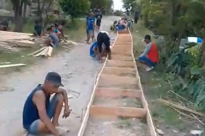 “Mungkin warga sudah ingin memiliki jalan mulus seperti desa lain, sehingga mereka tidak sabar menunggu bantuan pemerintah,” pungkasnya.