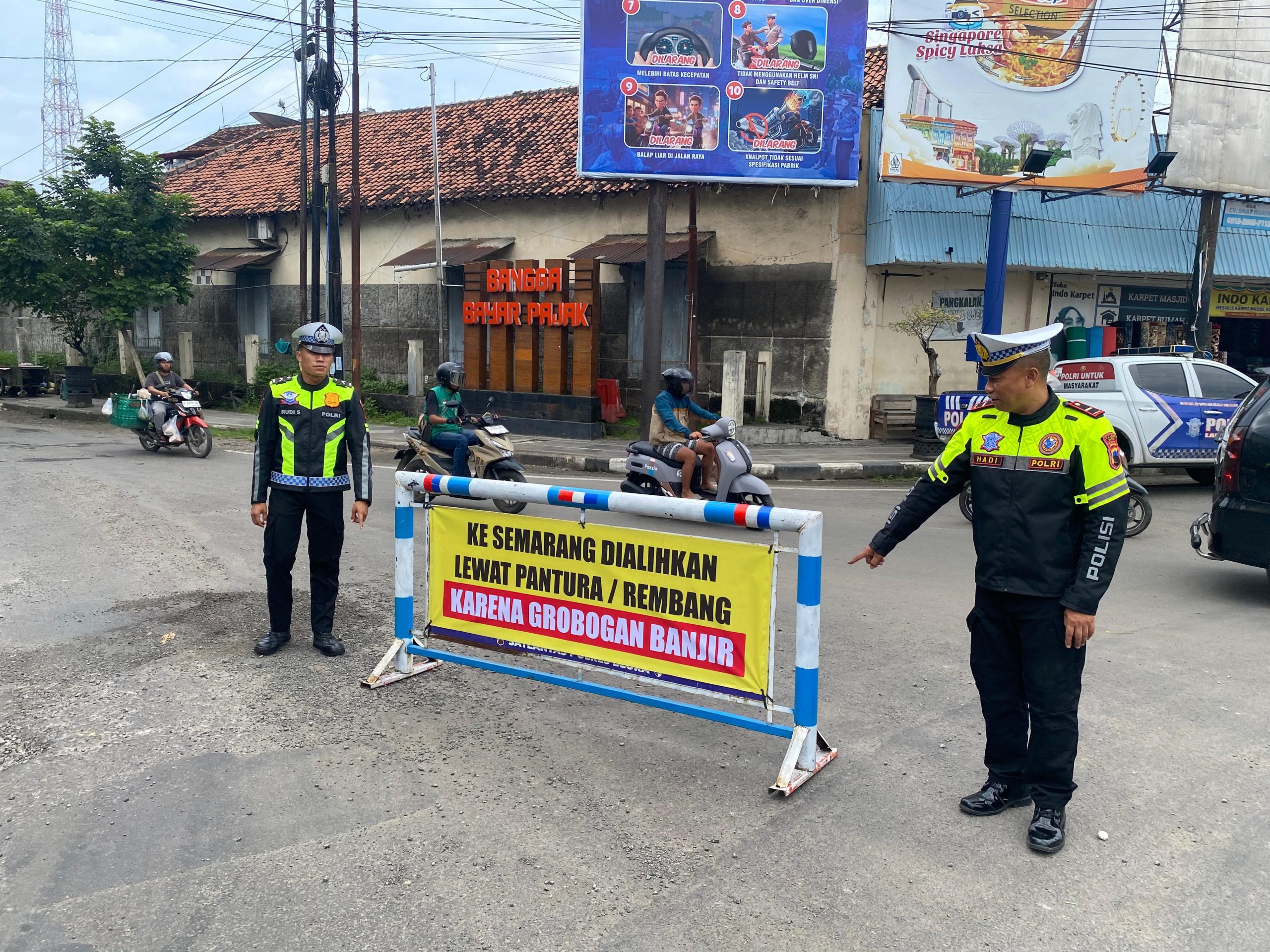 Kasatlantas polres Blora, AKP Anggito Erry Kurniawan, menjelaskan bahwa berdasarkan hasil koordinasi dengan Polres Grobogan, ruas jalan Semarang–Grobogan saat ini terputus total dan tidak dapat dilalui semua jenis kendaraan.