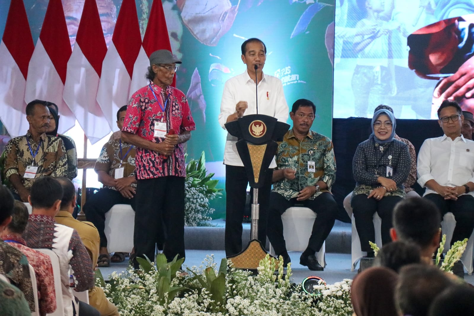 Suwito ditunjuk secara acak oleh Jokowi untuk menceritakan pengalamannya dalam memanfaatkan program JKN-KIS.