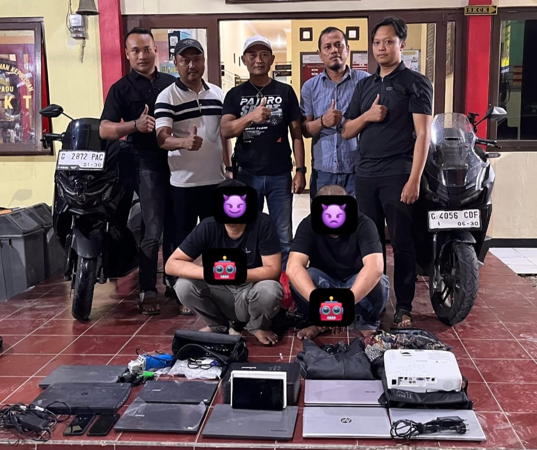 Satu unit laptop ditemukan di dalam tas milik tersangka, sementara satu unit proyektor ditemukan tersembunyi di dalam jok sepeda motor. Polisi menduga sebagian barang bukti lainnya telah dijual.