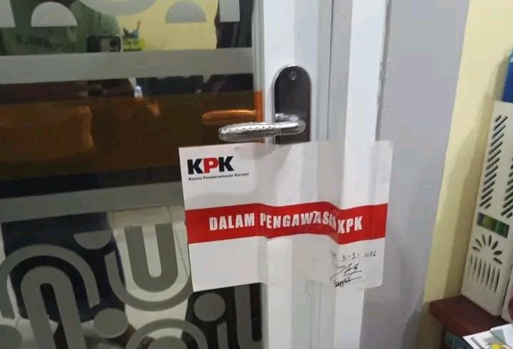Pantauan awak media di Gedung Setda Kabupaten Pekalongan, beberapa pintu ruangan terlihat tertutup dan ditempeli kertas berwarna putih-merah bertuliskan “DALAM PENGAWASAN KPK”. Pada segel tersebut juga tercantum logo KPK, tanggal 3-3-2026, serta tanda tangan penyidik.