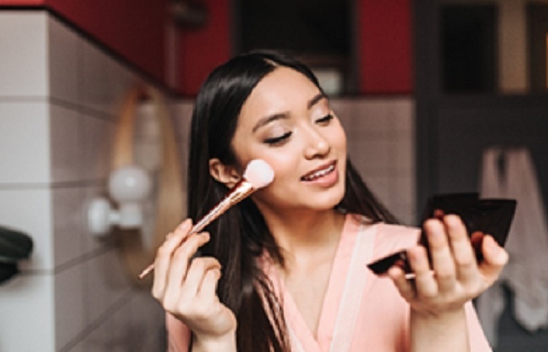 Jika Anda tidak ingin memakai make up yang terlalu berat, namun ingin tetap tampil segar dan merona, bisa menggunakan bedak setelah itu ditimpa blush on.