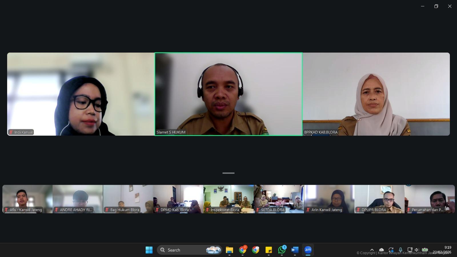 Semarang, Tuturpedia.com — Kabar baik datang dari proses penyusunan regulasi di Kabupaten Blora. Sebanyak lima Rancangan Peraturan Bupati (Raperbup) Kabupaten Blora resmi disepakati untuk melanjutkan ke tahap berikutnya setelah melalui Rapat Pengharmonisasian, Pembulatan, dan Pemantapan Konsepsi yang digelar oleh Kantor Wilayah Kementerian Hukum Jawa Tengah, Senin (23/02/2026), secara daring melalui Zoom Meeting.