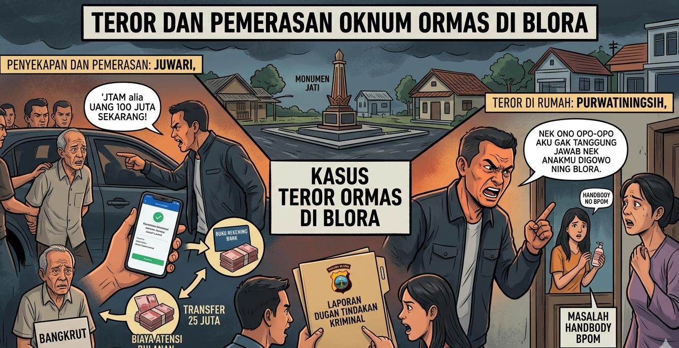 Pria berinisial JTAM kini menjadi sorotan setelah resmi diadukan ke Kepolisian Resor (Polres) Blora oleh dua warga berbeda atas dugaan pemerasan, penyekapan, hingga pengancaman.