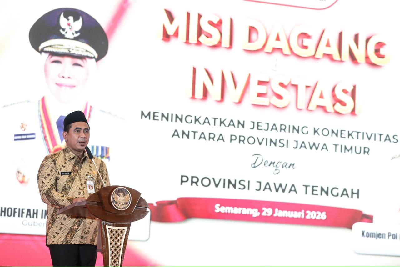 Semarang, Tuturpedia.com — Pemerintah Provinsi Jawa Tengah dan Pemerintah Provinsi Jawa Timur memperkuat kerja sama ekonomi lintas wilayah melalui gelaran Misi Dagang dan Investasi Jateng–Jatim yang berlangsung di PO Hotel Semarang, Kamis (29/1/2026). Kegiatan ini menjadi langkah konkret untuk mendorong perdagangan, investasi, serta memperluas jejaring usaha antarprovinsi.