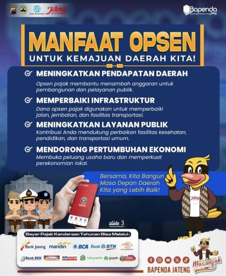 Ia menerangkan, opsen merupakan pungutan tambahan atas pajak kendaraan yang dipungut provinsi. Kebijakan ini merujuk pada Undang-Undang Nomor 1 Tahun 2022, yang mengatur pembagian kewenangan fiskal antara pemerintah pusat, provinsi, dan kabupaten/kota.