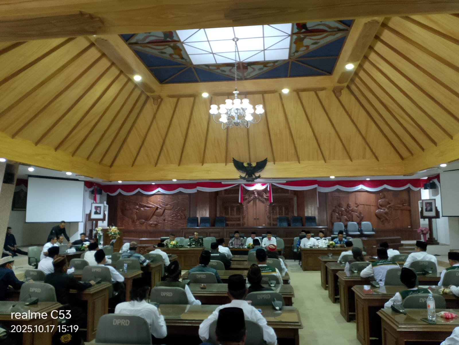 Tak hanya beraksi di jalan, para santri ini juga mendapat sambutan langsung dari Bupati Rembang, H. Harno di dalam gedung rapat paripurna DPRD setempat.