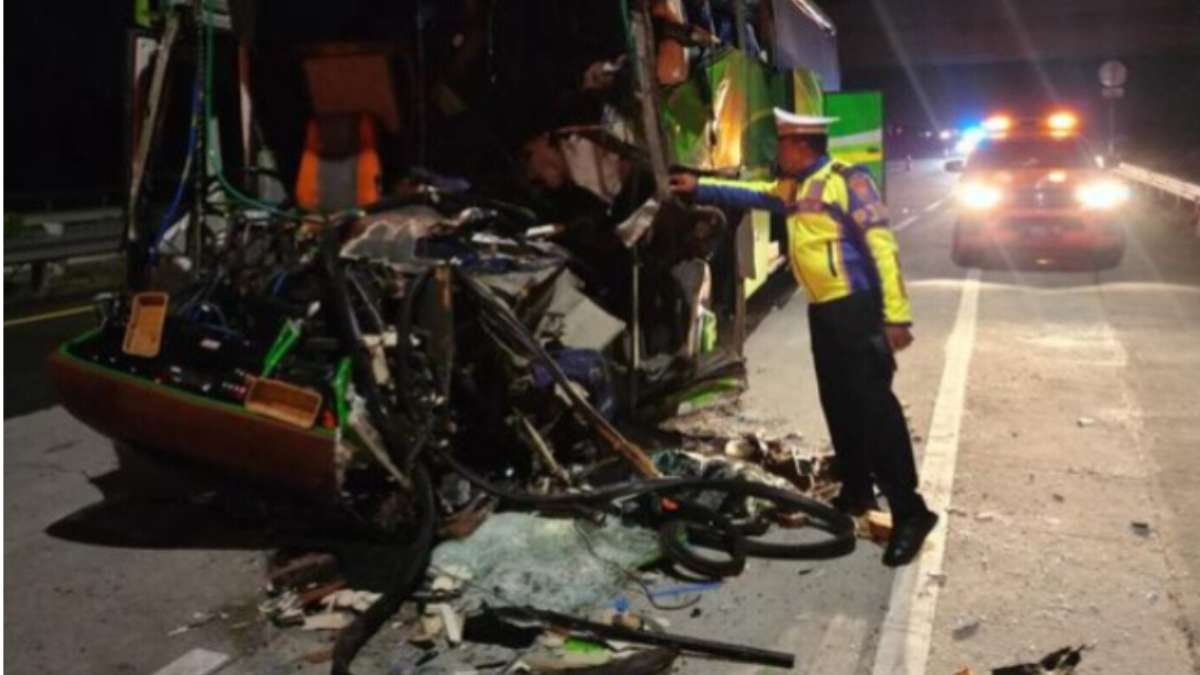 Akibat dari tabrakan tersebut, kondisi bus di bagian depan ringsek dan hancur parah. “Analisis kami, kecelakaan ini diduga dikarenakan pengemudi bus mengantuk,” ujarnya.***