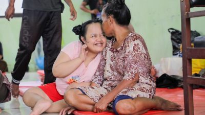 “Alhamdulillah, kebutuhan pengungsi sudah terpenuhi. Makan sehari tiga kali, anak-anak juga dikasih susu dan buah-buahan,” ujar Muasanah.