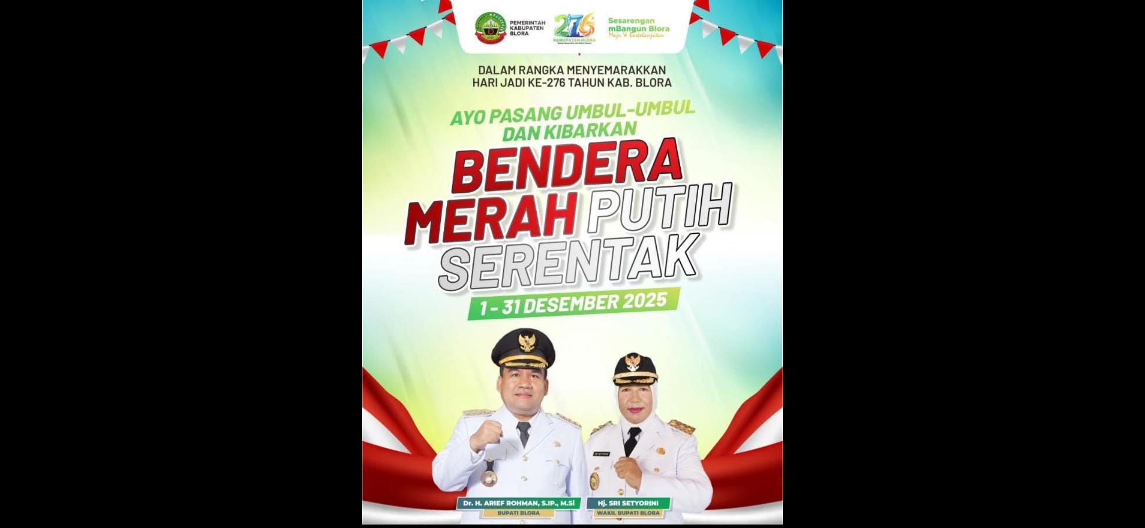 “Dalam rangka menyemarakkan Hari Jadi ke-276 Tahun Kabupaten Blora, mari kita bersama-sama memasang umbul-umbul dan mengibarkan Bendera Merah Putih serentak,” demikian bunyi seruan yang terpampang di poster resmi Pemerintah Kabupaten Blora.