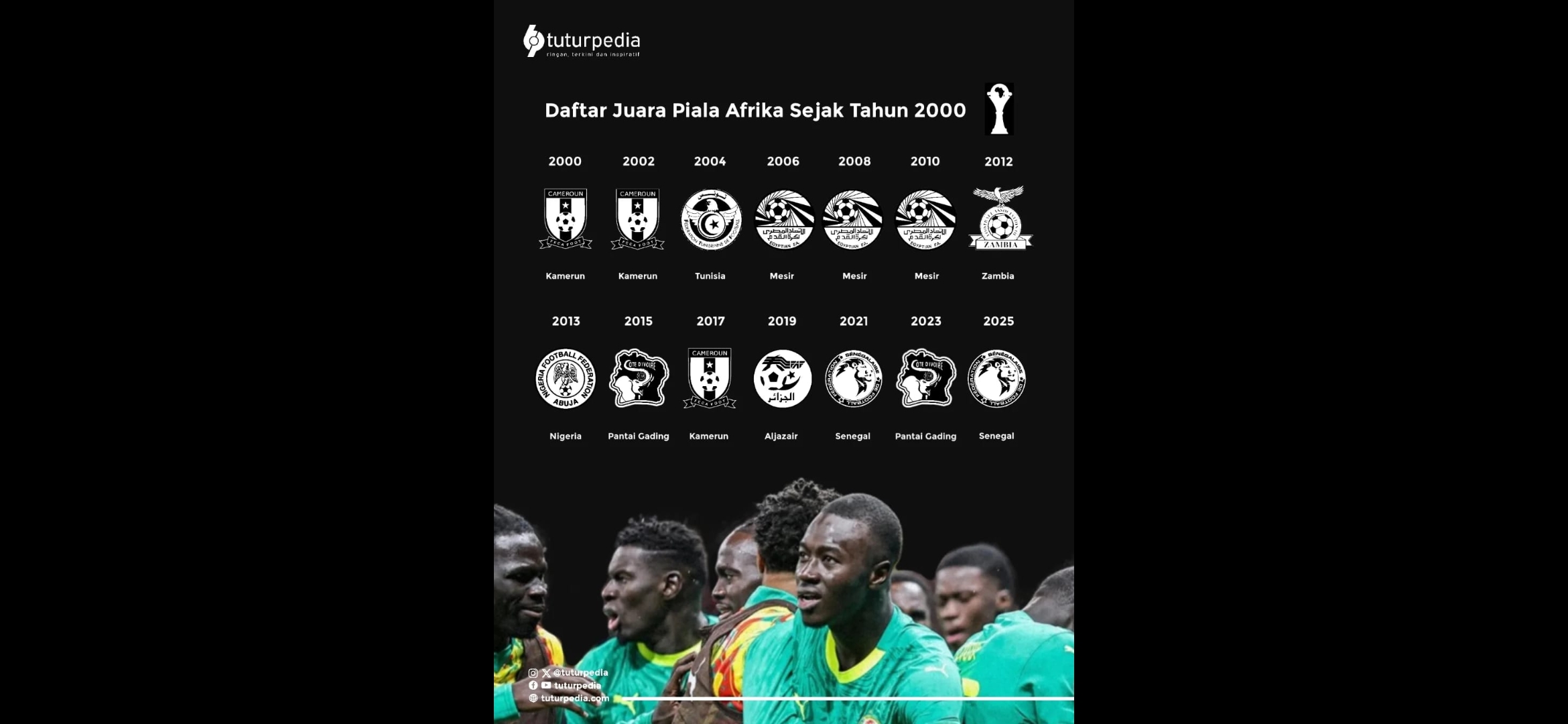 Berdasarkan catatan juara Piala Afrika sejak tahun 2000, Senegal mencatatkan dua gelar dalam tiga edisi terakhir; 2021 dan 2025. Catatan ini menempatkan Les Lions de la Teranga sebagai kekuatan paling stabil di Afrika dalam satu dekade terakhir.