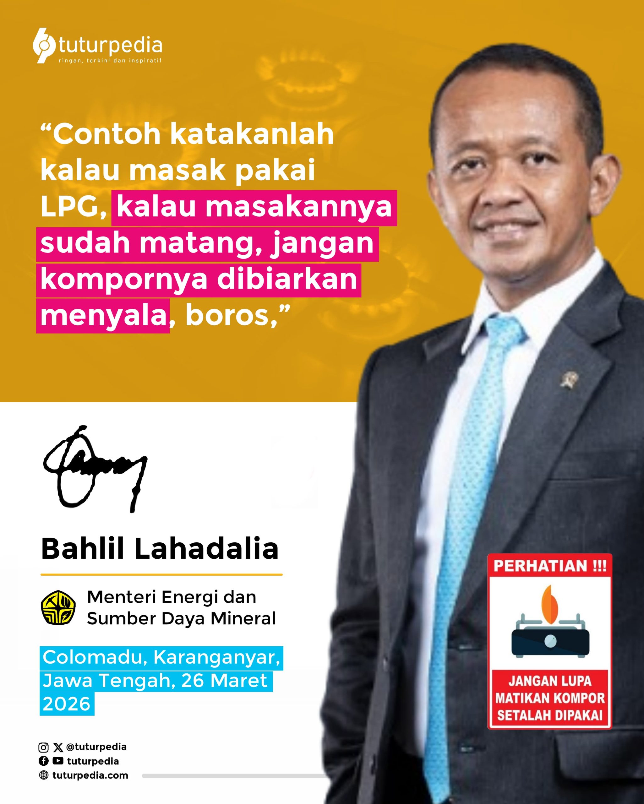 Dalam agenda yang berlangsung di Colomadu, Jawa Tengah, pada 26 Maret 2026, Bahlil menekankan pentingnya perubahan perilaku masyarakat dalam hal konsumsi energi, termasuk dalam aktivitas sehari-hari di dapur. Ia menyoroti kebiasaan yang kerap dianggap sepele, yakni membiarkan kompor tetap menyala meskipun proses memasak telah selesai.