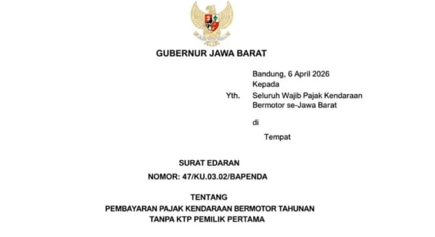 Gubernur Jawa Barat, Dedi Mulyadi, mengumumkan bahwa mulai 6 April 2026, masyarakat tidak lagi diwajibkan melampirkan KTP pemilik lama saat membayar pajak kendaraan. Kini, wajib pajak cukup membawa STNK dan KTP pemilik kendaraan saat ini.
