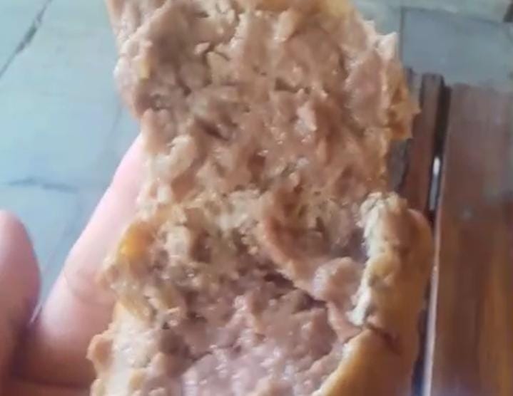 Dalam video tersebut, seorang warga menunjukkan menu makanan yang dibagikan, namun fokus utamanya tertuju pada kondisi tahu bakso yang dinilai tidak layak makan.